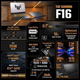 با لپتاپ ایسوس TUF Gaming F16 FX608JMR، قدرت و عملکرد بینظیر را تجربه کنید! مجهز به پردازنده قوی و کارت گرافیک پیشرفته، این دستگاه مناسب بازی و کارهای گرافیکی است. طراحی مقاوم و صفحهنمایش باکیفیت، این لپتاپ را انتخاب اول گیمرها کرده است.
