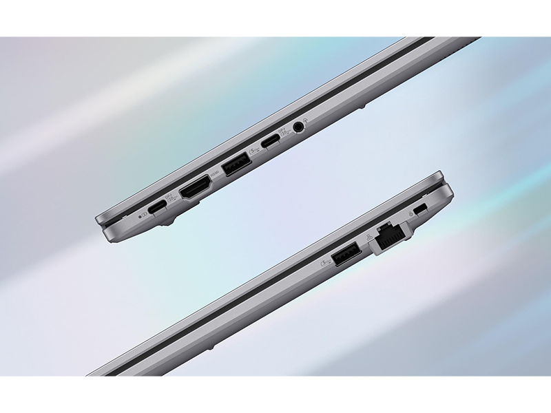 لپ تاپ ایسوس P1503CVA به مجموعه کاملی از پورتها برای پشتیبانی از تمام نیازهای شما مجهز شده است. دو پورت USB 3.2 Gen 2 Type-C برای هر اتصالی آماده هستند و از هر دو قابلیت USB Power Delivery و DisplayPort پشتیبانی میکنند. علاوه بر این، دو پورت USB 3.2 Gen 1 Type-A وجود دارد تا بتوانید به راحتی دستگاههای USB موجود یا قدیمی را به لپ تاپ جدید خود متصل کنید. برای خروجی ویدئو، لپ تاپ ایسوس P1503CVA سری ASUS ExpertBook P1 دارای یک پورت HDMI 1.4b است و یک جک هدفون 3.5 میلیمتری هم برای شنیدن موسیقی در اختیار شماست. امنیت نیز با افزودن یک قفل Kensington Nano افزایش یافته و یک پورت RJ45 اتصالات سیمی را ممکن خواهد ساخت.